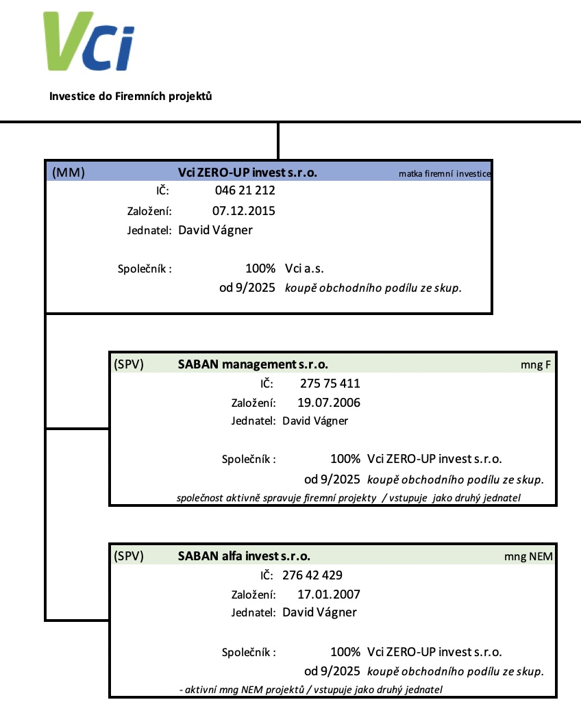 K vytvoření nové struktury jsme použili mimo jiné i nejstarší společnost z naší skupiny, která byla založena již 19.7.2006 a v příštím roce oslaví dvacet let od svého vzniku. Firma SABAN management s.r.o. již naplnila svůj účel v původním projektu a nyní ji můžeme použít pro nové aktivity.